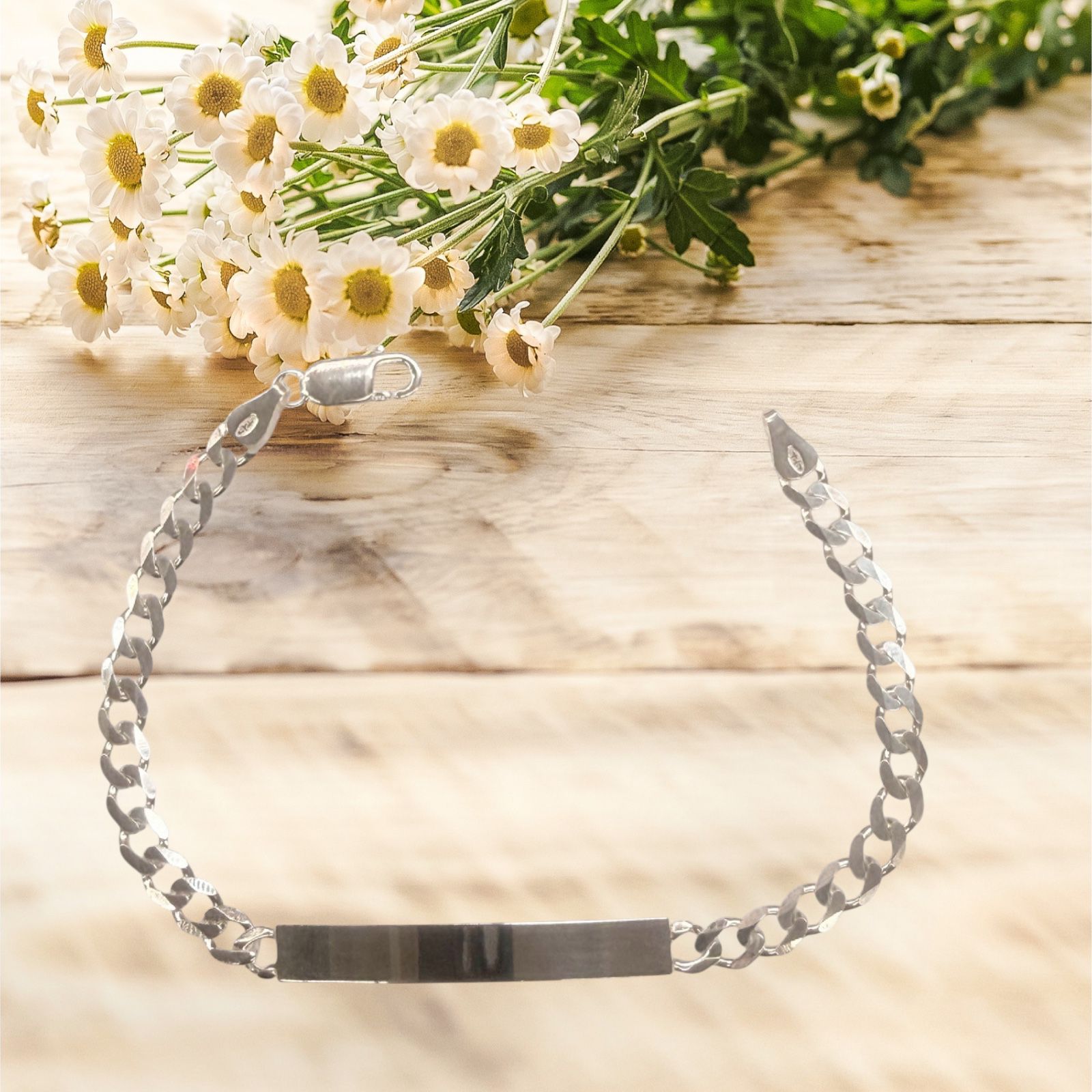 Esclava cubana con olaca, de plata Italiana 925, mide 8 pulgadas y tiene un ancho de 5.5 milímetros.